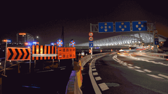 ▲昨晚,首批车辆经由临时便道绕行前往T2