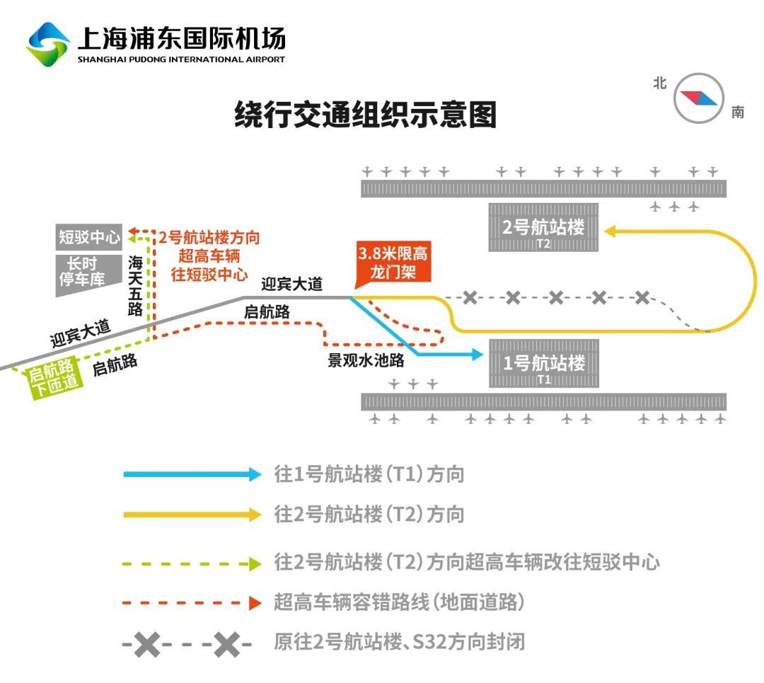 从1号航站楼、2号航站楼返回市区的道路不受影响。经S32申嘉湖高速由南向北进入浦东机场的车辆通行不受影响,经S32由北向南行驶过境浦东机场的车辆建议通过其他道路绕行。