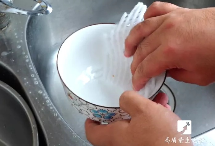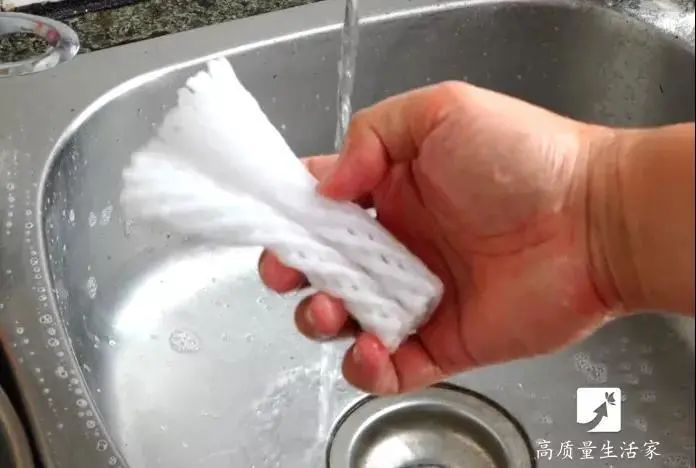 洗手池 用了一段时间之后,边上就会有一层水垢,这时候我们就可以用到水果网套来清洗,水果网套的摩擦力非常强,不仅能将水垢清洗干净,而且还不会划伤洗手池的表面,真是一举两得。