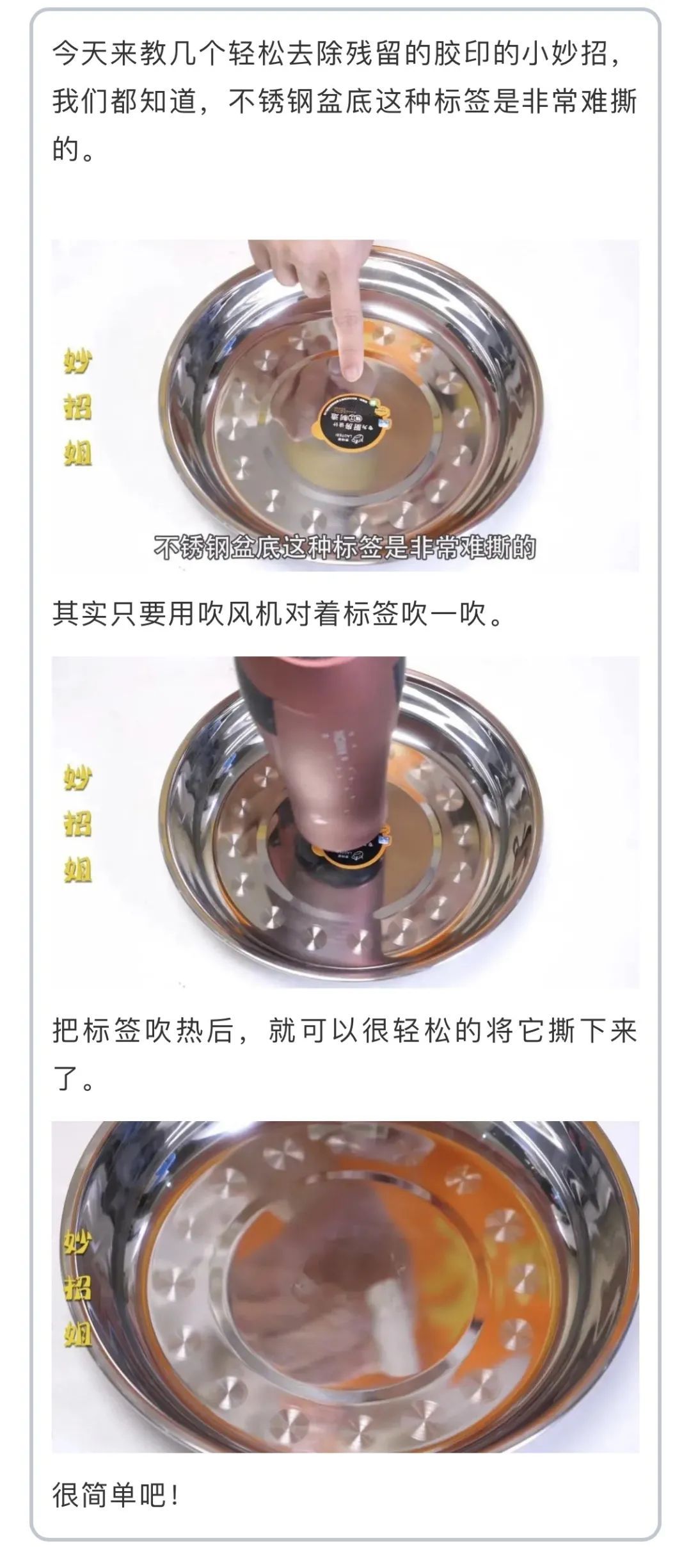 虽然用吹风机可以完整的撕下标签,但是有些标签下面还是会留下难以去除的胶印。