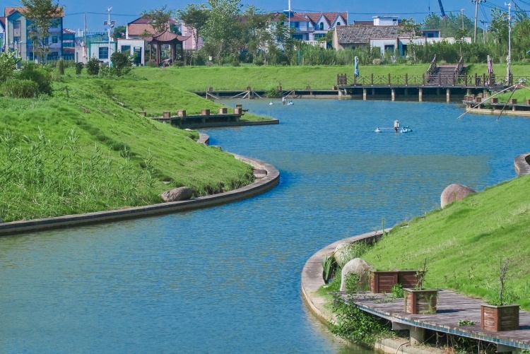 如今,行走在塘北村,樱花大道落英缤纷、河边步道移步换景,沿岸小楼林立,家家户户青枝绿叶、生机盎然,现代农业基地、“口袋公园”、塘角嘴休闲区与农田风光辉映,交织出一派丰富多元的新农村风貌。