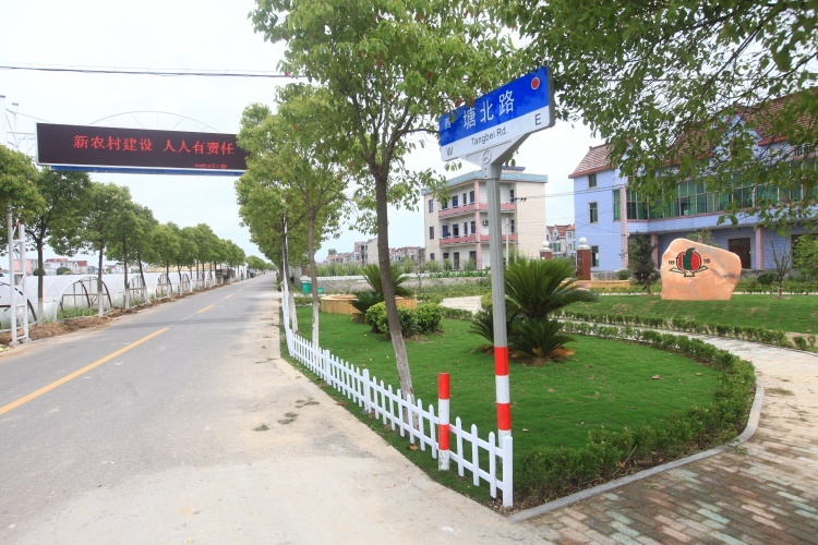 如今,塘北的路,可以用“城市化”来形容,沥青路面上划有规范的交通线,在全村形成“八横四纵”,要道处还设有宣传标语的电子屏。沿着一条条干净宽敞的道路走进塘北村,可以望见每条道路紧邻一条河道,路旁花台成带,村民临河而居,形成“一河一路一景”的独特景致。
