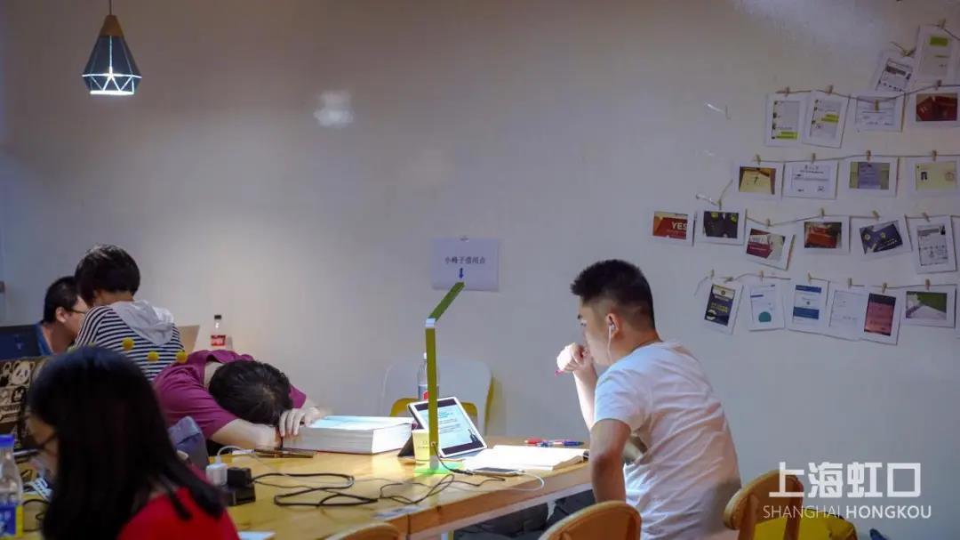 下午5点,小虹来到位于虹口区四平路上的“时不我待自习馆”,它藏身于一栋有些年头的商务楼内,离地铁站只有几百米的距离,此时,好几个上班族模样的年轻人与小虹一同进了电梯。