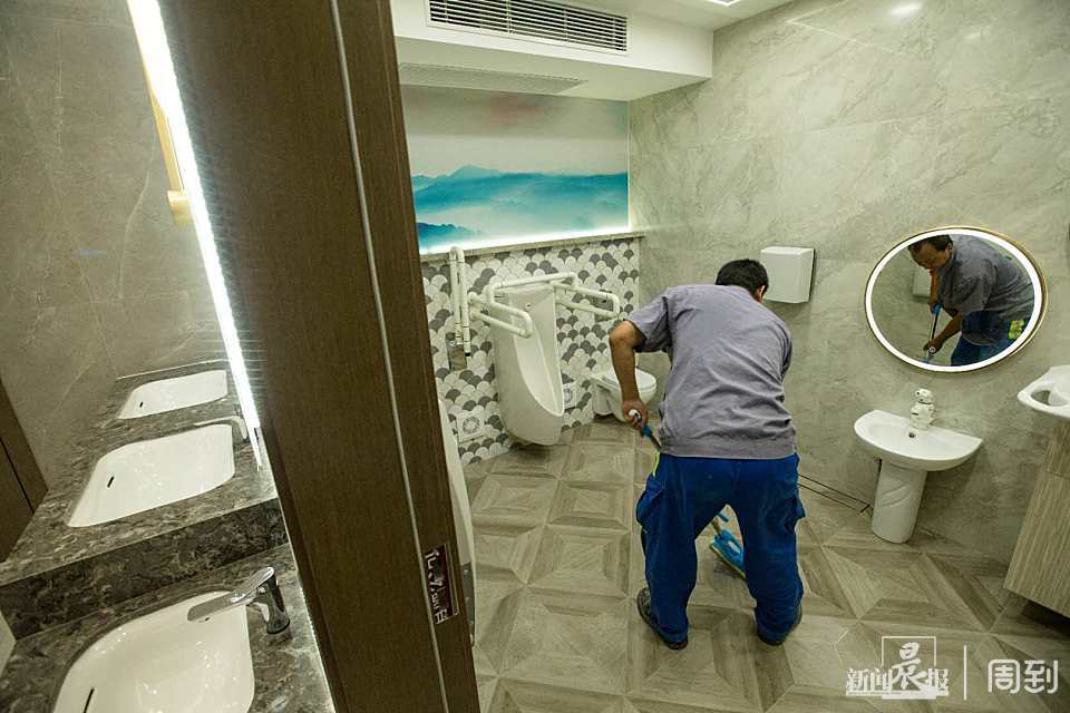 管理员介绍,考虑到女性使用厕所花费时间较长,容易排队,改造后,男女厕的面积和厕位比例达到2:3,其中,男厕有6个便间和6个小便池,女厕有18个便间。整座公厕不设前台,管理室设在女厕区域旁边。据介绍,这是为了让游客更加自在。