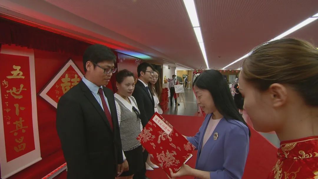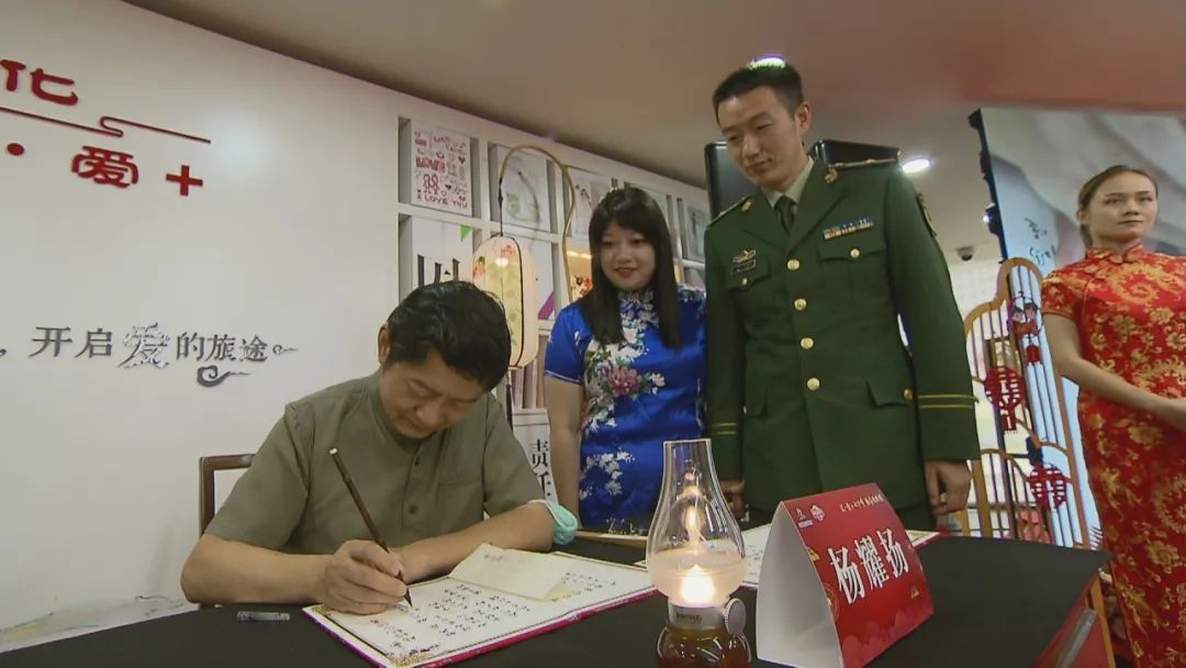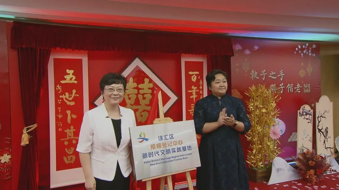 2020年,中华大地历经了新冠肺炎疫情的考验,全国人民万众一心抗击疫情,涌现出了一批批抗疫英雄,他们是抗击在一线的白衣天使、是默默无闻的社区工作者、是坚守岗位的社区民警、是无私奉献的志愿者;2020年又恰逢新中国第一部法律《婚姻法》颁布70周年。在这具有重大历史意义的时刻,8月25日下午,在徐汇区婚姻登记中心,由区民政局牵头,区文明办、区文旅局、区卫健委、区总工会及区妇联共同联合开展“汇· 爱 +七夕 翰墨致楷模”为抗疫英雄、劳模、军人等书写婚书的婚俗文化活动暨徐汇区新时代文明实践基地揭牌仪式。区委常委、宣传部部长吕晓慧、区人大副主任、总工会主席朱伟红、市民政局婚管处处长沈家观及相关单位领导出席活动。