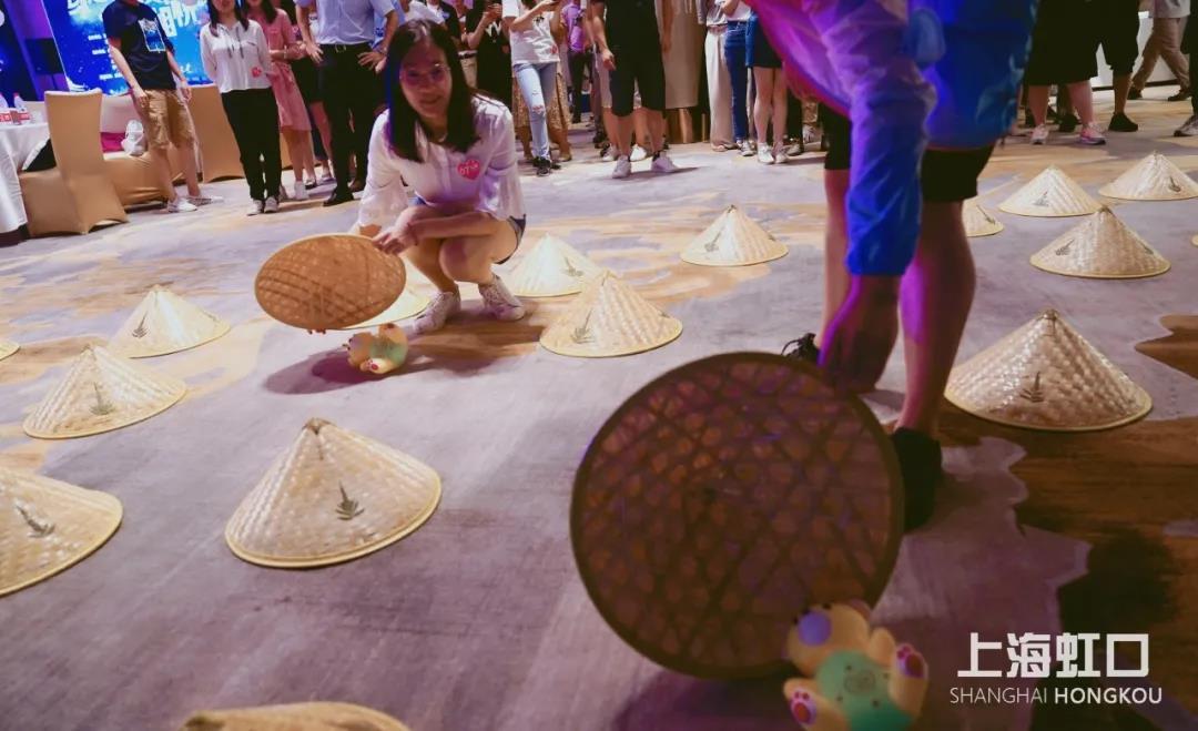 “玩偶对对碰”的游戏考验彼此默契程度,男女青年依次牵手,同时揭开放在地上的斗笠,斗笠下的玩偶若相同,则视为“有缘人”,可将玩偶拿走。这个环节共有3对“有缘人”拿到了心仪的礼物。