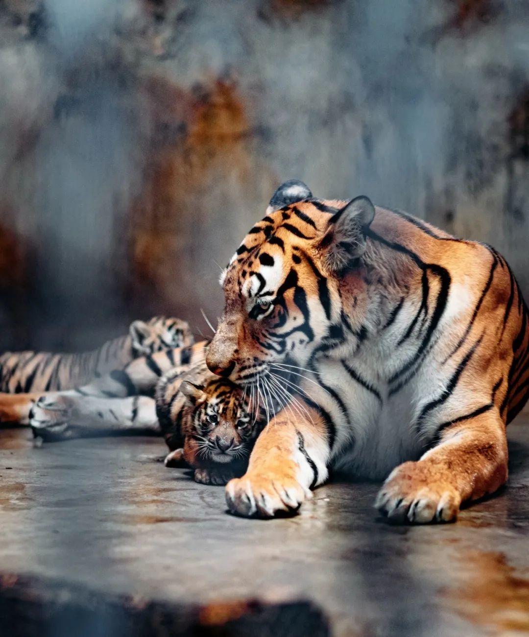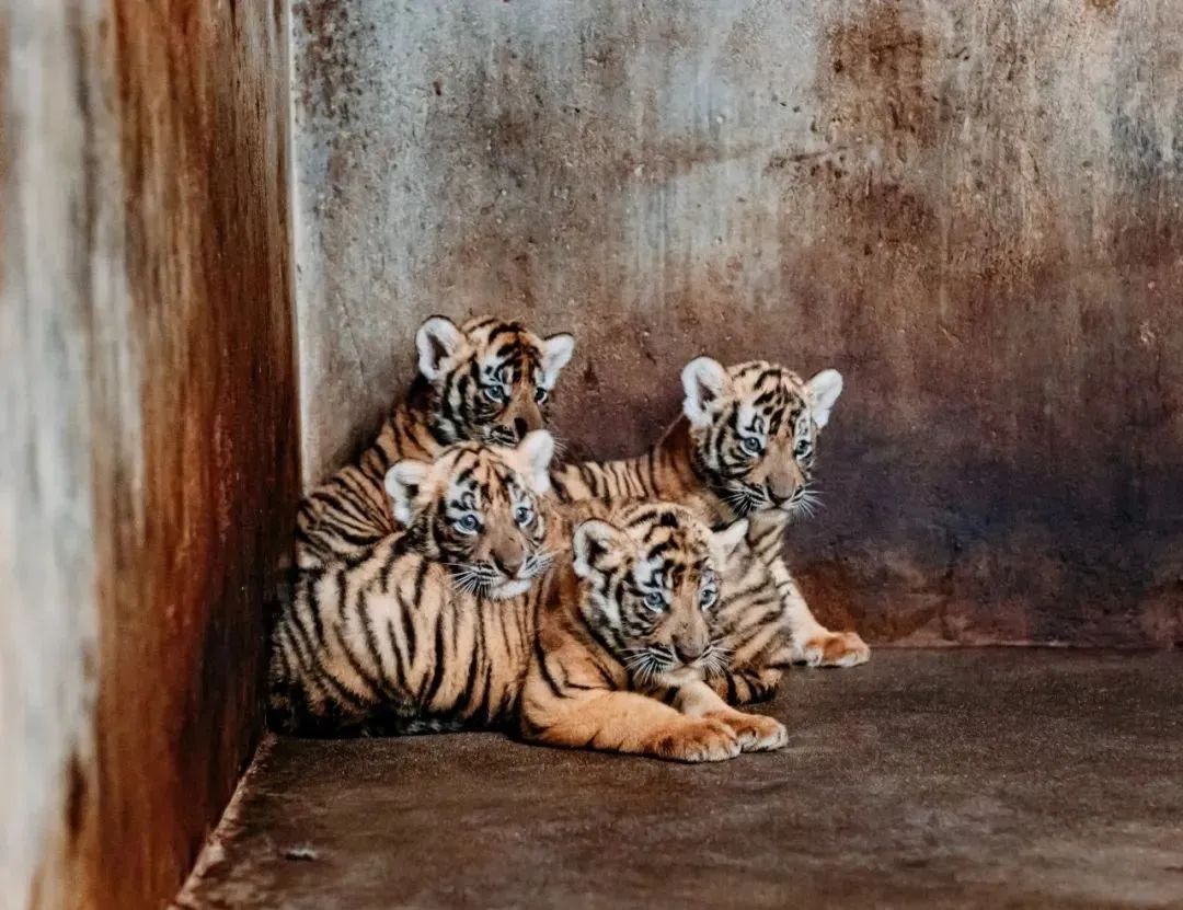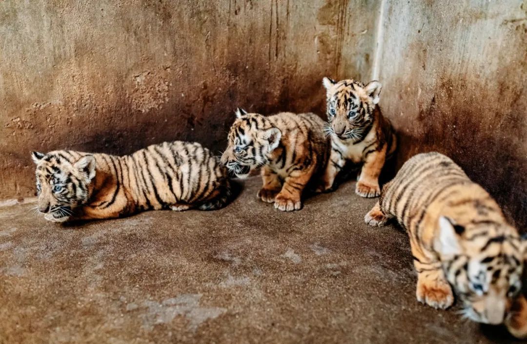 这对虎爸虎妈能结成爱情结晶,为华南虎种群再添新生力量,真是可喜可贺,希望四位小公主快快健康长大,和隔壁同月出生的孟加拉虎“大南”、“小南”一起组成最强“小虎队”,早日出道,来展区中迎接游客。