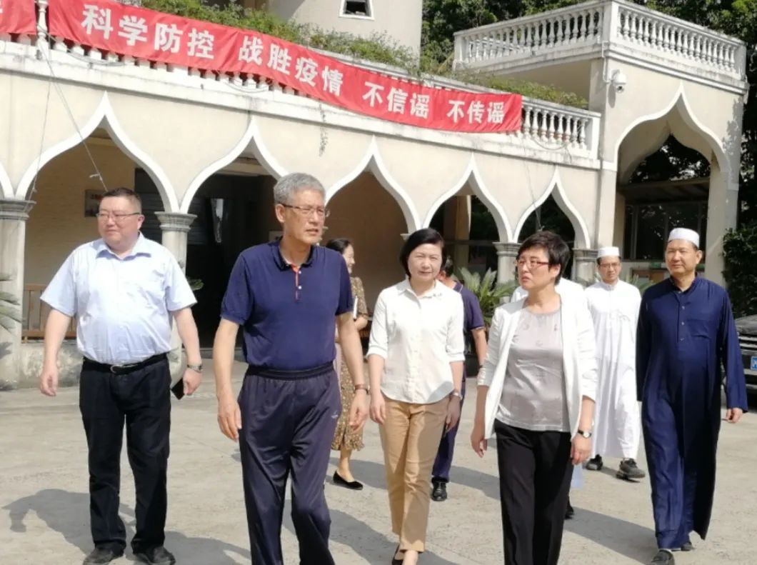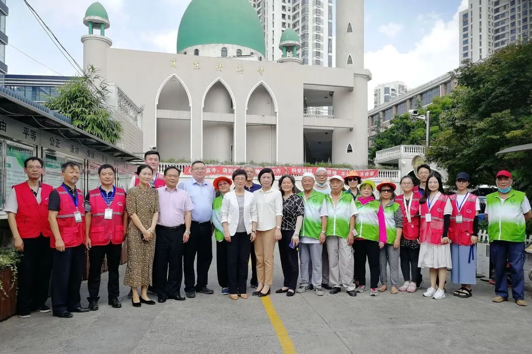 8月21日下午,浦东新区委常委、统战部部长金梅一行赴浦东清真寺和钦赐仰殿道观检查宗教活动恢复开放工作并看望慰问志愿者。街道相关负责同志参加检查。