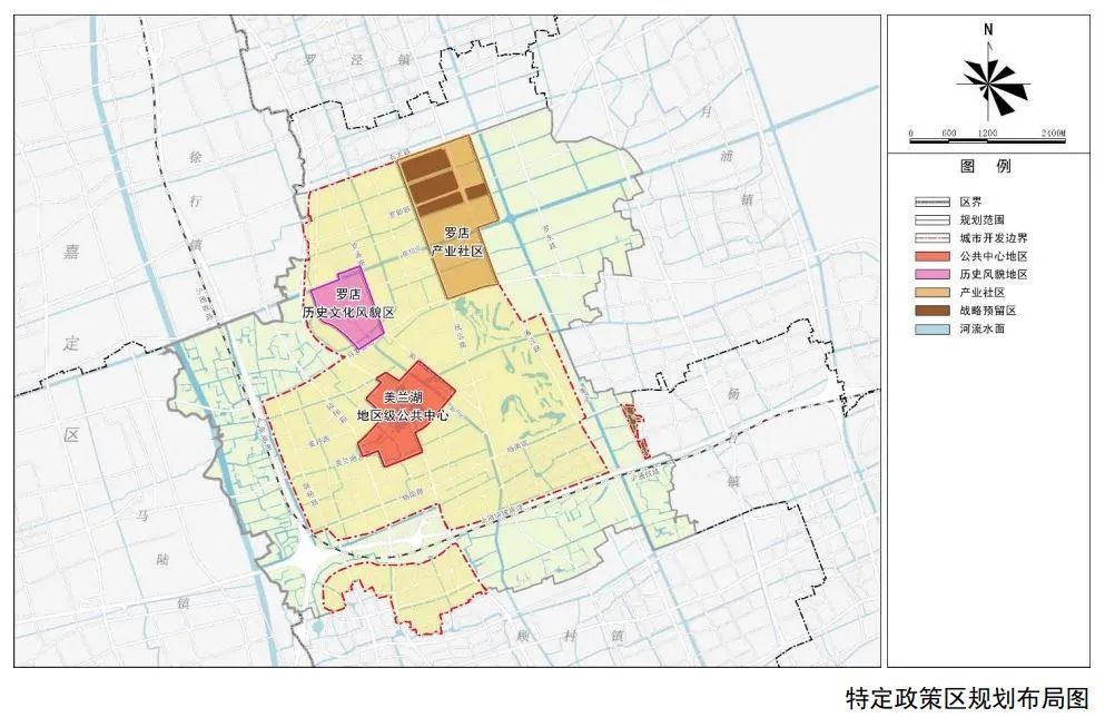 城镇单元为美罗家园大型居住社区、顾村大型居住社区、罗南社区单元为居住生活型社区,罗店老镇、美兰湖新镇、富锦社区为综合服务型社区,罗店工业园区为产业社区,月杨工业园区为战略留白区。