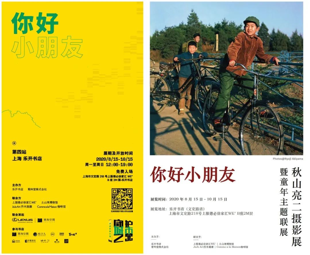 这是秋山亮二先生“你好小朋友”系列(《你好小朋友》《光景宛如昨》摄影集)首次“合璧”展览,也是一次由乐开书店发起,联动上服德必徐家汇WE"及周边街区的体验式展览。