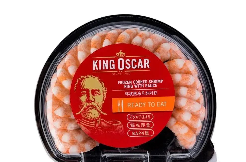 这款King Oscar环状熟冻凡纳对虾,是很多吃播博主的心头好。原料来自BAP水产养殖规范认证的泰国亚兰养殖场,每只虾都经过精选、清洗,体态饱满,肉质紧实。经去壳、去头、去除虾线后,保留虾尾可搭配包装内的酱料直接食用。