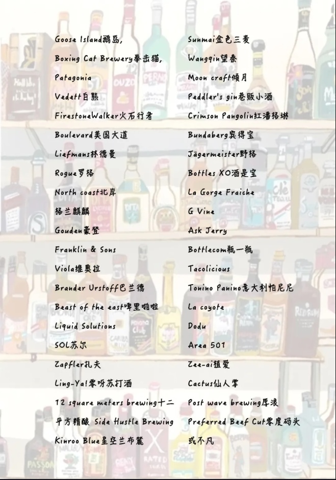 在不这里,你将品尝到以下所有品牌的酒类&美食(包括但不限于):