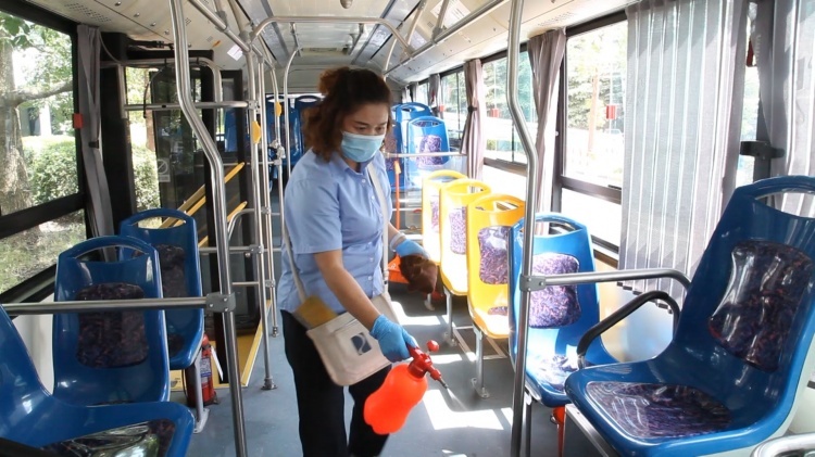 南汇公交将车辆消毒作为常态化工作执行,车辆在每一个班次运行前,安排专人对营运车辆进行通风和卫生清理;在车辆晚间停运进场后,严格按照程序开展全面的消毒工作,并做好记录。