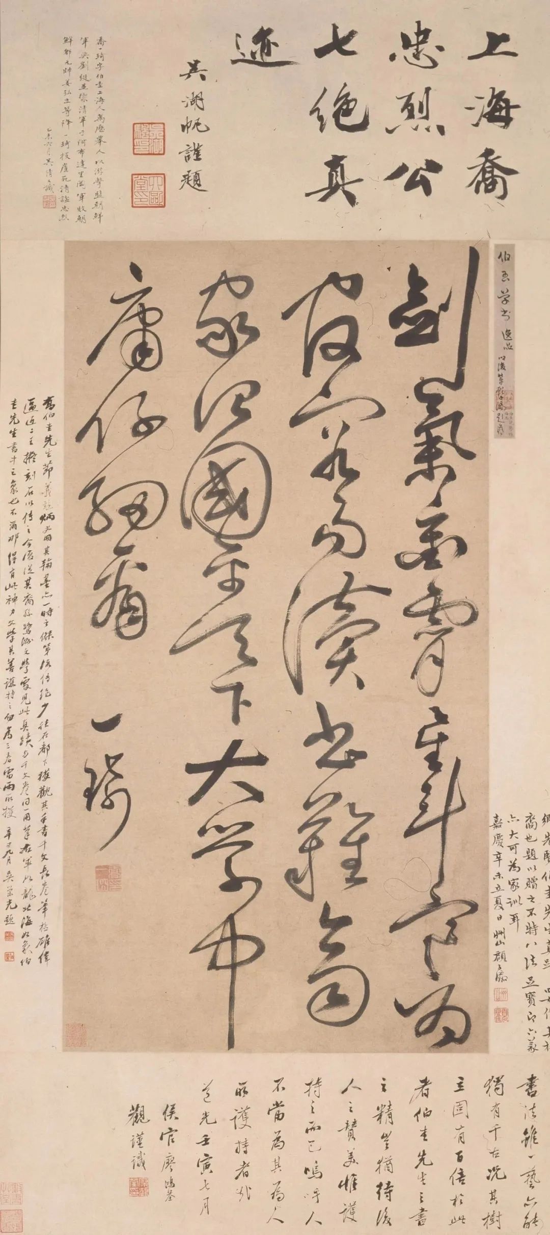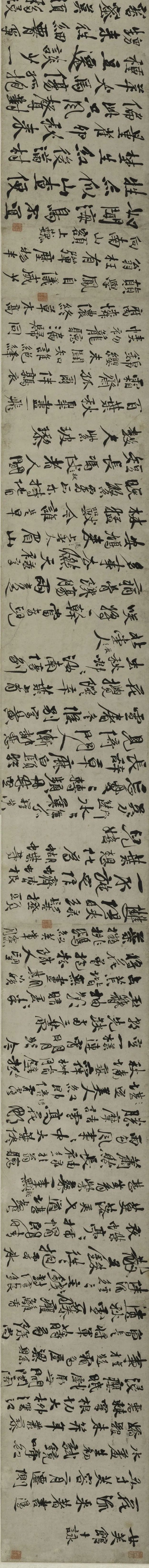 张雨(1283—1350),字伯雨,号句曲外史,浙江杭州人。师从赵孟頫,清逸有晋唐风度。此卷为张雨等人为杭州玛璃寺住持僧芳洲藏琴所书诗作。至元五年(1339),作者时年五十七岁。