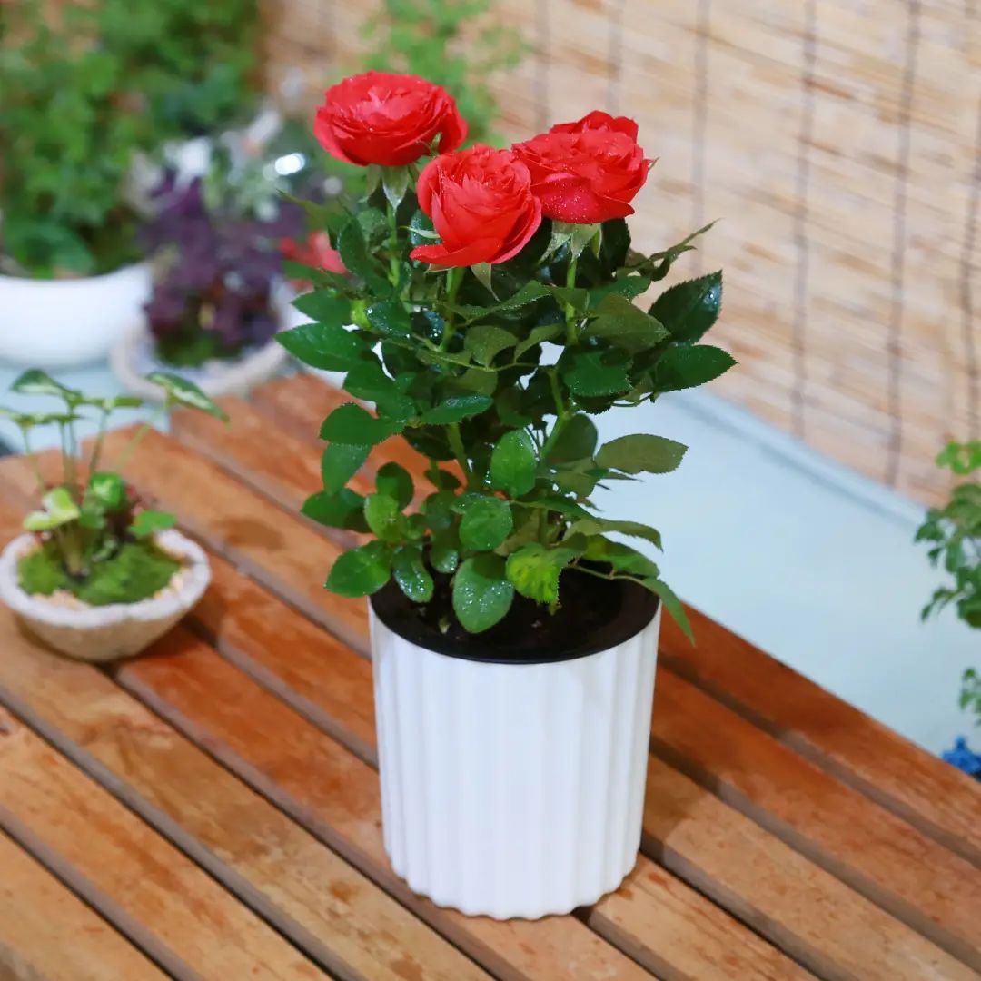浪漫爱情-月季盆景:除了大片种植月季,北双还种植有月季盆景,供市民游客带回家种植观赏。