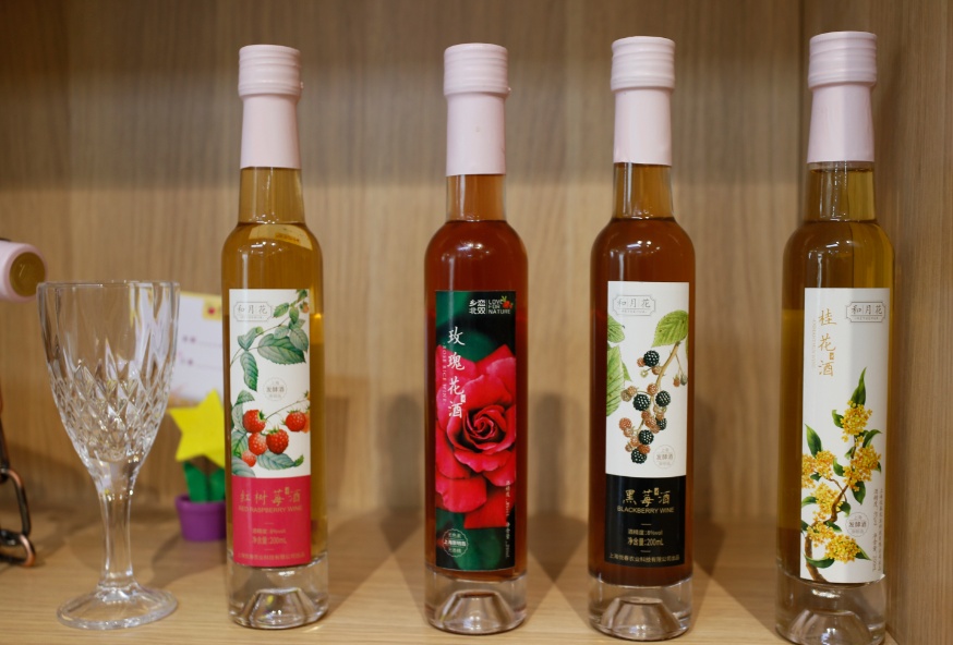 微醺果酒-和月花:“和月花”品牌有七款花果酒,有草莓酒、黑莓酒、蔓越莓酒、红树莓酒、桂花酒、蓝蝴蝶酒、崇明清酒。“和月花”果酒果香浓郁,清爽可口,不甜不腻,仿佛精灵般的尤物。