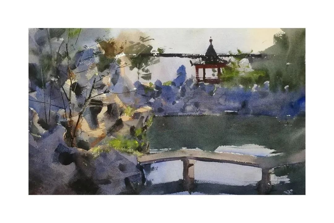 水彩讲究的是一气呵成。水彩画的特性决定了几乎无法修改,因此成就一幅成功的画作非常不容易,背后可能堆着十幅、二十幅甚至更多失败的作品。作画过程中,面对败笔残局,伤心总是难免的,但收拾心情,重整旗鼓,往往发现柳暗花明,峰回路转。