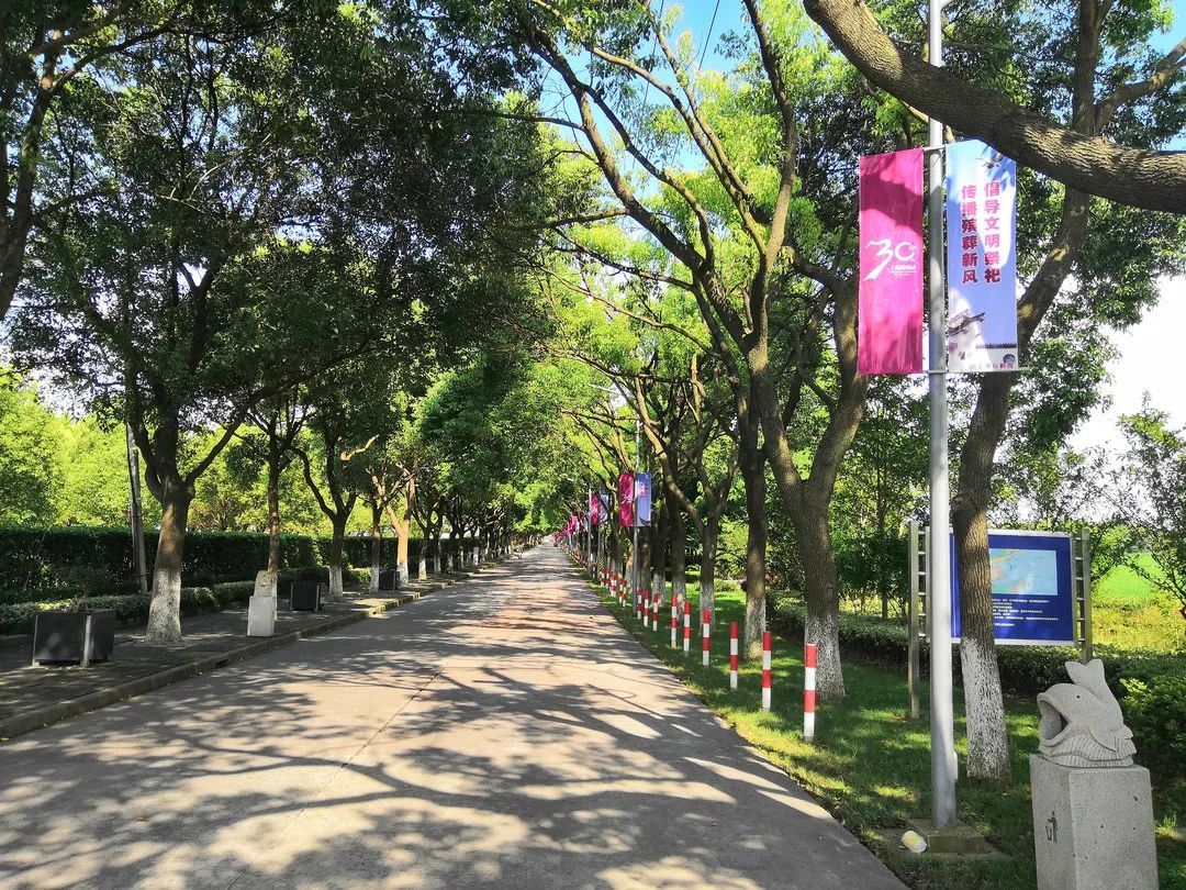 奉贤区南桥镇沈陆村沈陆中心路,全长2.2公里,路面宽度7米。道路线形优美,绿树成荫,环境秀丽,连接格子农场、特色美食、爱国教育基地,是一条集农业观光、休闲娱乐、文化美食为一体的绿色长廊。建设“四好农村路”,助力市郊居民踏上幸福快车道。