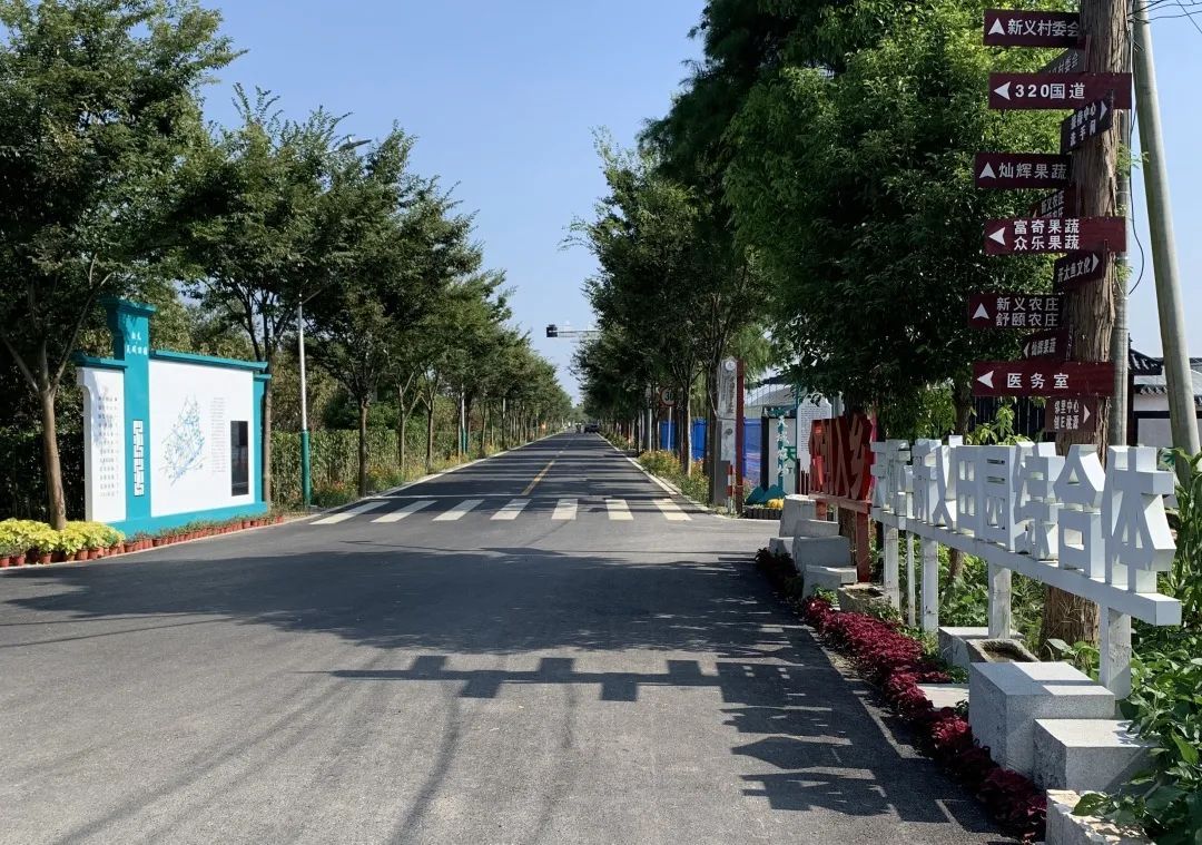 新义路位于枫泾镇新义村,全长3.825公里,宽7米,两侧绿化优美、景观小品齐全,还有著名的网红打卡胜地马鞭草花海;枫泾6路公交车畅行新义路全线,便利的交通促进了经济发展,“众创入乡”,打造了天域新义田园综合体,创E桃源、莲锡乡创书院和新义旅游接待中心,游客络绎不绝。