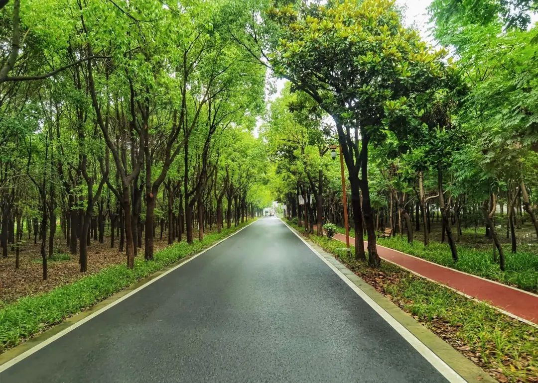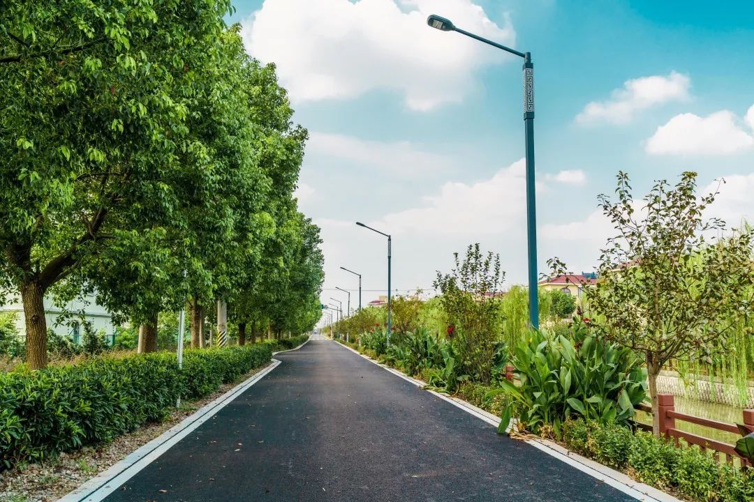 新张路位于“庄行郊野公园”内,全长2.77公里。绿化景观采用“原搬原种、因地制宜、疏密错落”的原则,保留再利用现状植物的同时植入组团式绿化景观,更好的体现了郊野风貌。路好知村美,引领产业兴,“四好农村路”建设构建了外联交通、内畅乡村的乡野新风貌。