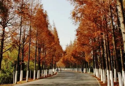 霜竹公路(嘉行公路-徐星路)位于华亭镇,是嘉定休闲农业旅游主要景观道,一年四季五彩缤纷。春天鹅黄嫩绿、青翠欲滴;夏天满目葱茏,凉意阵阵;秋天金黄明媚,树影斑驳;冬天树梢枯寂,野趣横生。道路蜿蜒,环境清幽,成为上海首批开放式休闲林地之一。