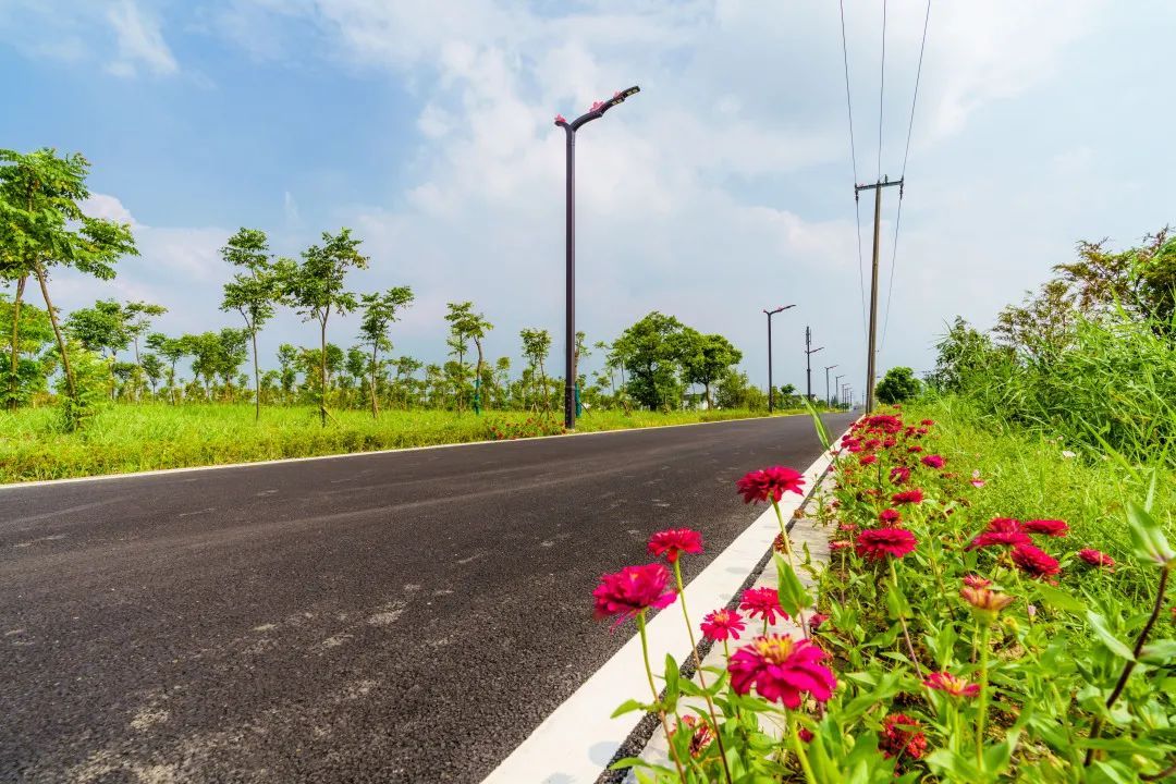 位于新农河河畔的张奉路全长2.5公里,路面平整,路肩饱满,两侧花草繁茂,不仅方便了村民出行,也为海湾村“人文+科创”发展道路提供保障。“湾里生活驿站”、“大学生创业孵化中心”、“素拓基地”、“生态大棚”等项目齐聚于张奉路沿线,宽阔便捷的道路交通为乡村振兴发展奠定了基础。