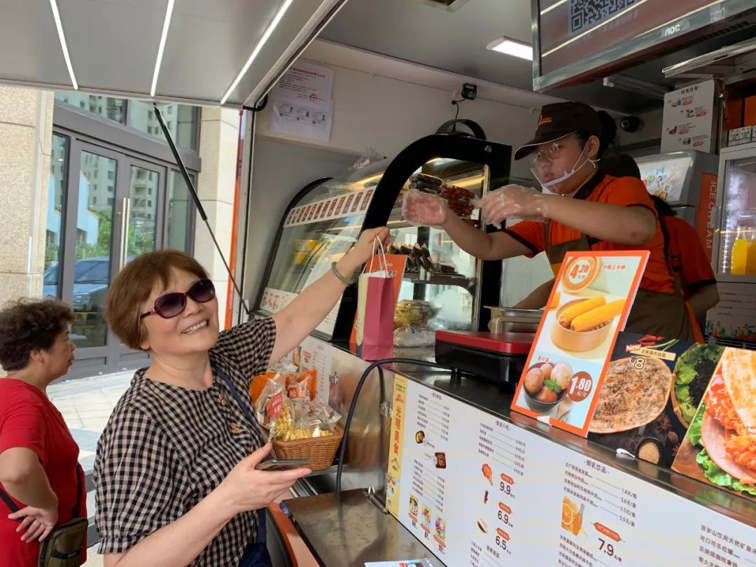 2020年8月28日,企业首批两部餐车样车分别在杨浦区平凉街道通北路390号上粮大厦正门、宝山区上海移动互联网创新园华滋奔腾大厦落地。由于样车暂时无法移动,得到了两区商务委、街道及园区管理方的大力支持,指导企业办理“上海市食品摊贩临时经营公示卡”。餐车试运营期间,提供50个sku单品,包括博海中央工厂生产的蒸包、寿司、饭团、盒饭便当、健康果蔬,光明乳业的鲜乳制品,以及网红正广和橘子汽水。更值得一提的是在商务楼宇的餐车,还提供了博海新品色拉,给爱美的女士提供了健康轻食。新车试运行期间,公司还准备了丰富的赠品和促销活动,手抓饼+光明小白奶新客扫码免费送,消费满10元赠送餐具组合一套等等,让消费者能够品尝到新鲜、元气满满的早餐。
