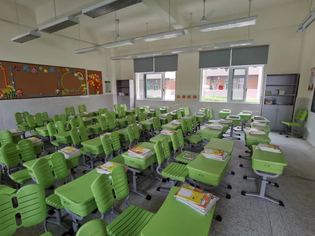 学校规划35个教学班,目前有两个年级、14个班级,近630名学生。