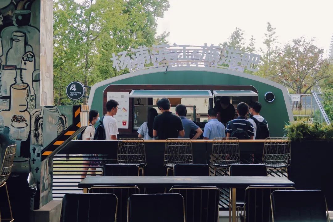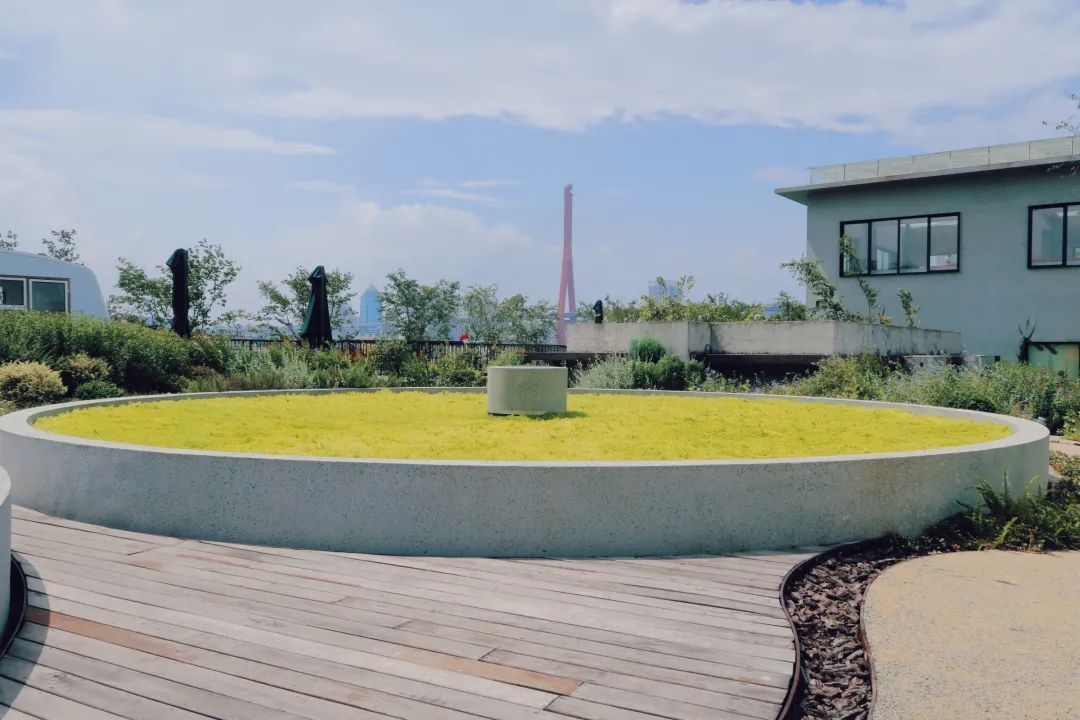 乘坐杨浦滨江观光车,来到由烟草机修仓库改造的绿之丘,42coffee就位于 “绿之丘”脚下。