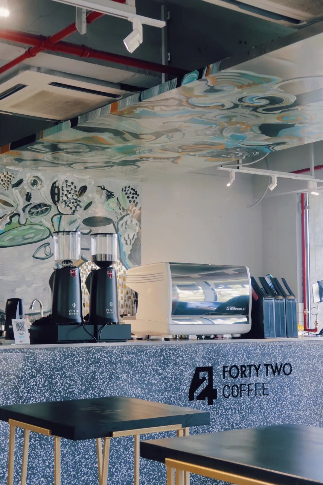 这座“空中花园”造型奇巧,每层皆被绿植覆盖,体现了现代建筑与自然的完美结合,这优越的地理位置也给42coffee增添了几分韵味。