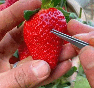1.首先将取一个成熟的草莓,用镊子取出里面的种子;