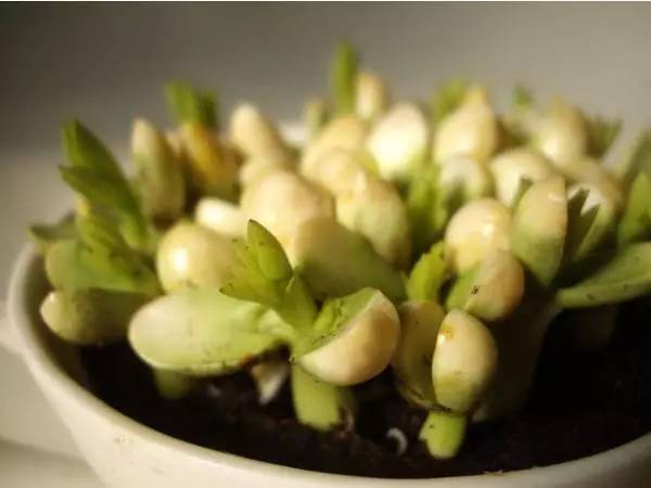 2.将取出的种子放在潮湿的纸巾上,盖上保鲜膜,大约一周左右种子开始萌芽~