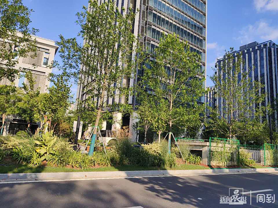 金融商圈门前的街头绿地区域以节点绿化为主,与周边建筑形成同样的简洁大气风格。