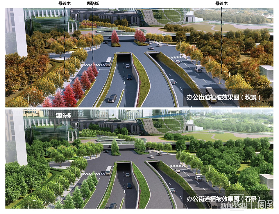 五列景观树形成“翡翠绿链”,入秋将成渐变色带