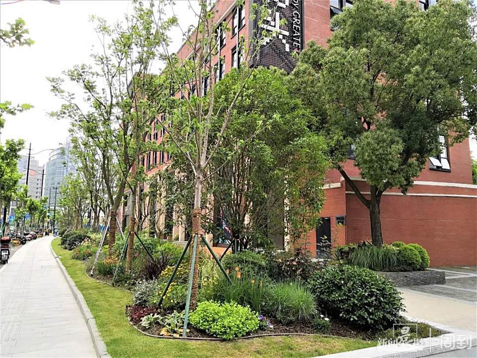 黄浦区绿化管理部门介绍,五列绿化景观树种依次呈现渐变色带,是此次工程的特色之一。路的中分带绿化乔木为娜塔栎,这种乔木每年11月初开始变红,冬季落叶。