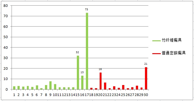 4%乙酸环境下竹纤维餐具与普通密胺餐具