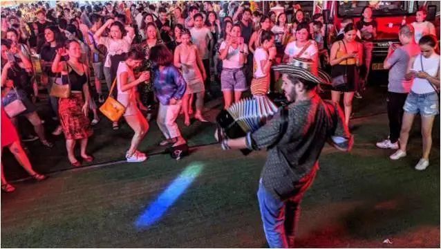 来自世界各国的街头艺人用悦耳的歌声吸引着大家停下脚步,直播点赞。具有浓郁的民族色彩的墨西哥舞团,身着绚丽多姿的民族服饰,在街道上穿梭舞动,用热情奔放的的表演为人们带来无尽的欢乐。