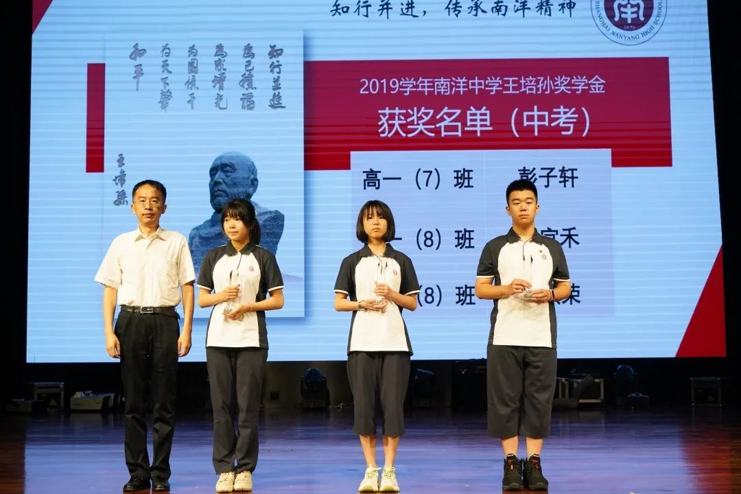 为了纪念和发扬老校长“饮水思源”的优良传统,推动学校的教育事业发展,仪式中,校领导为18名在中、高考中表现杰出的南洋学子颁发了“王培孙奖学金”。典礼最后,南洋中学校长王圣春在校长寄语中,向新时期南洋学子提出三点希望:“希望南洋学子拥有矢志不渝的信念,能够经得起风浪的考验;保持不负韶华的朝气,汲取知识的养分走在时代的前列;拿出笃定前行的动力,担当起历史和时代赋予的重任!”