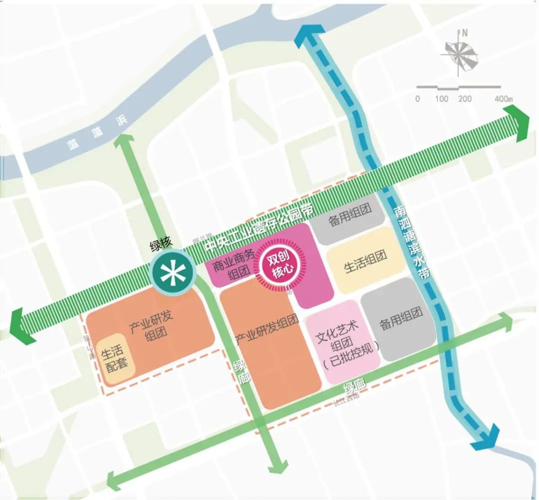 该区域定位为吴淞文化创意和高端科技创新的两创产业先导区、彰显上海钢铁工业文明的文博休闲地标区、服务宝山中心城地区的高品质活力区。