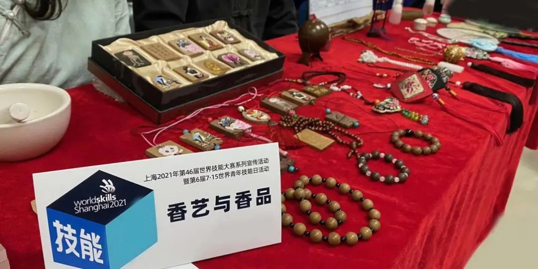 7月15日,在世界青年技能日的“技能集市”上,中国香文化研习者、“香艺”概念提出者乔木森,向现场观众展示并介绍着眼前精致秀美的香艺制品。这些作品皆为乔木森纯手工制作而成,其中不少品类被列为非物质文化遗产名录。除了讲解香艺的制作流程,他也向观众讲解着香制品背后的文化传承。