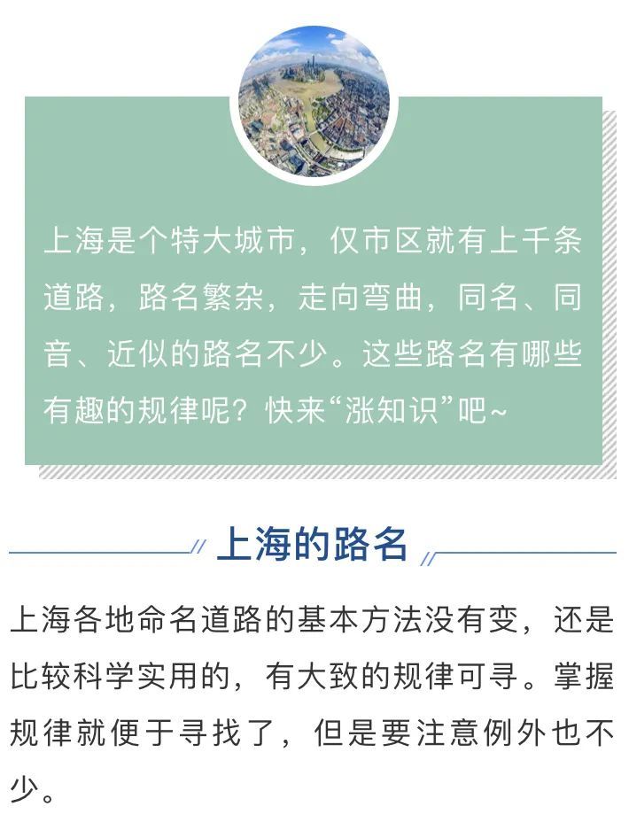 以本地老地名命名的道路一般就在该地附近。例如陆家嘴路在陆家嘴,肇家浜路在肇家浜。但也是有例外的,譬如宝山路不在宝山;桃浦东路与桃浦西路与桃浦路无关,离桃浦甚远,而且是南北走向的。