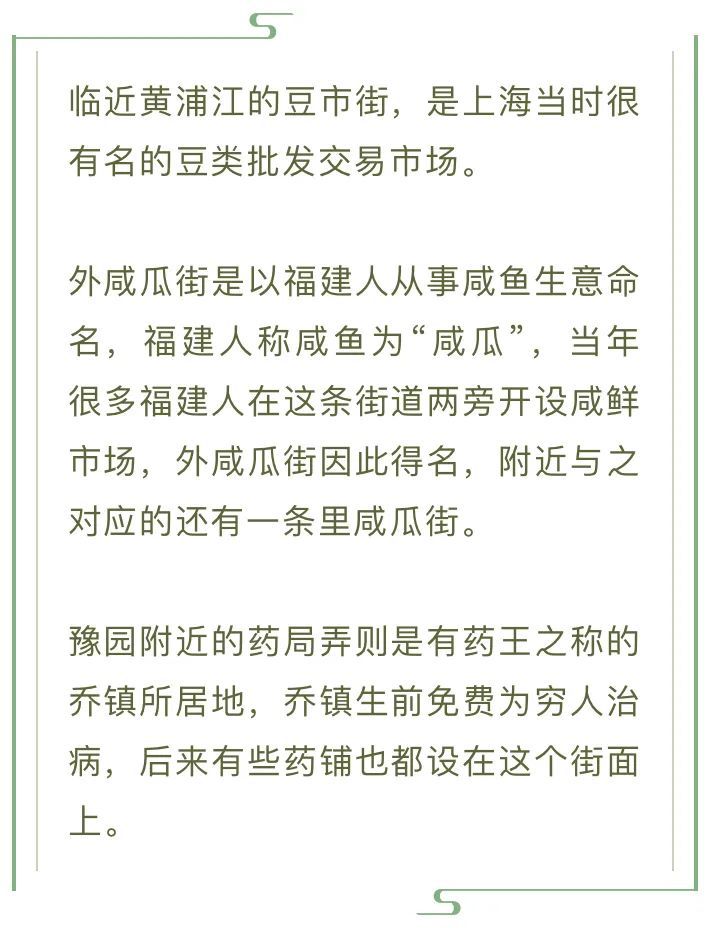 除了用行业特征命名外,当时上海还有以标志性建筑物来命名街道的案例。例如黄浦区的巡道街,清朝时这里是江苏省政府在上海设立的派出机构,路名叫做“苏淞太兵备道”,简称巡道街。该街一旁有条“天灯弄”,天灯即路灯,当时只有在重要机构门前才设置路灯,这里也是那时上海唯一有路灯的地方,故而得名。