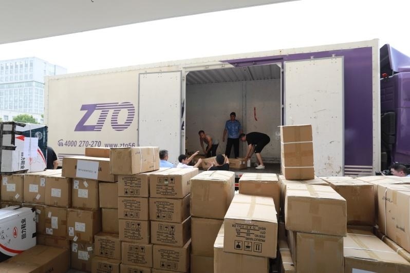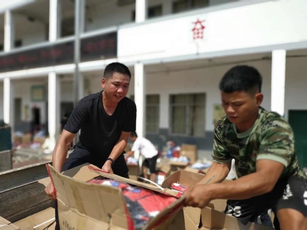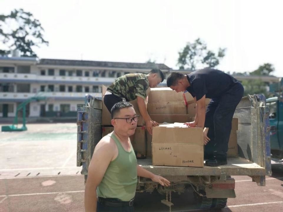 8月26日,在上海边检总站扶贫办主任李国官同志的带领下,金山站全体人员齐心协力将物资搬上开往广西的货车,由中通快运如东分公司免费运输。