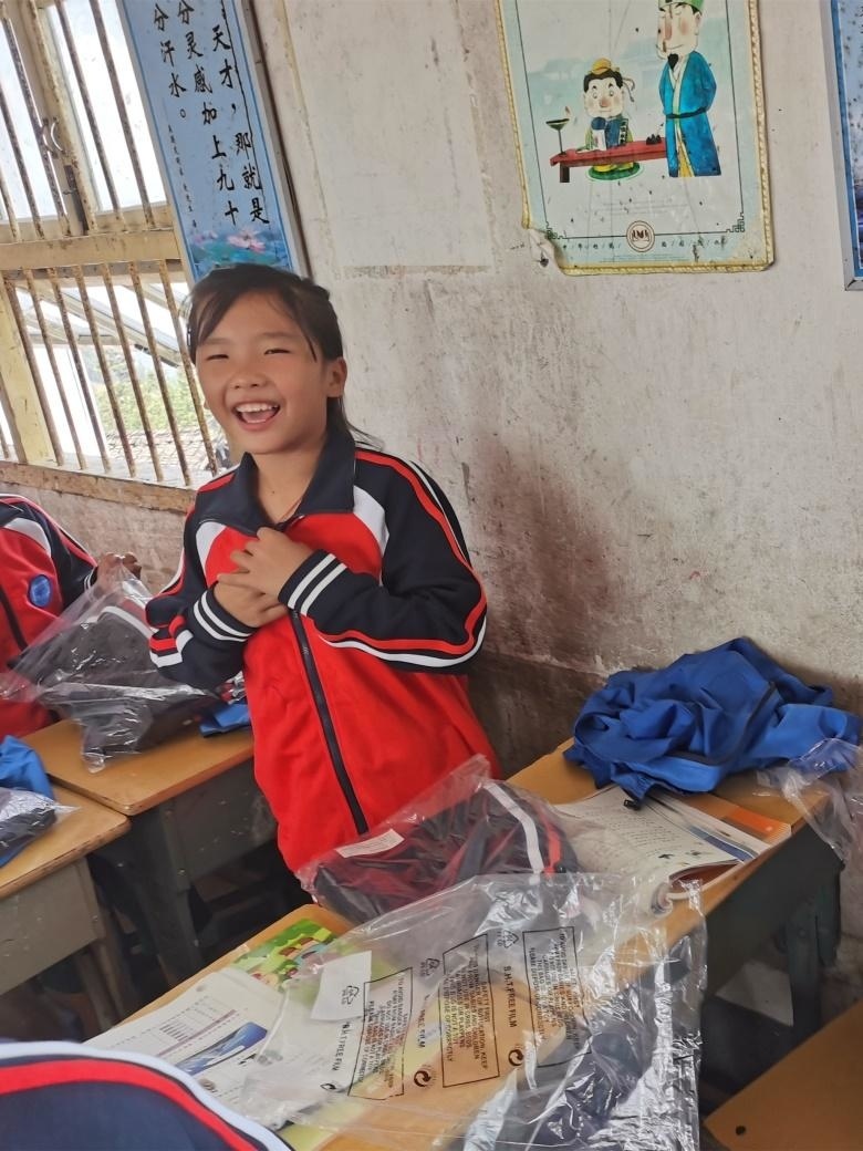 为兑现这个承诺,在任英超副总站长的全程关心指导和总站扶贫办的帮助下,金山边检站经多方募集资金,携手淮安亿华服装有限公司、上海化工区物业管理有限公司、上海孚宝港务有限公司、浙江省微笑明天慈善基金会等爱心企事业单位超额完成了校服制作任务。
