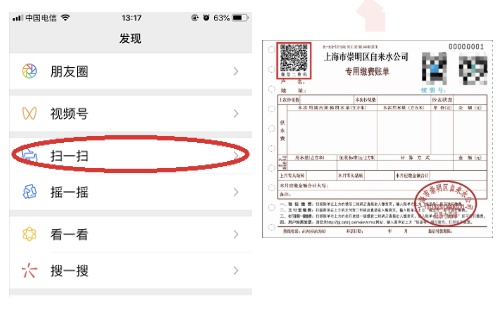 1.打开微信,通过“扫一扫”功能,扫描水费缴费账单左上方微信二维码
