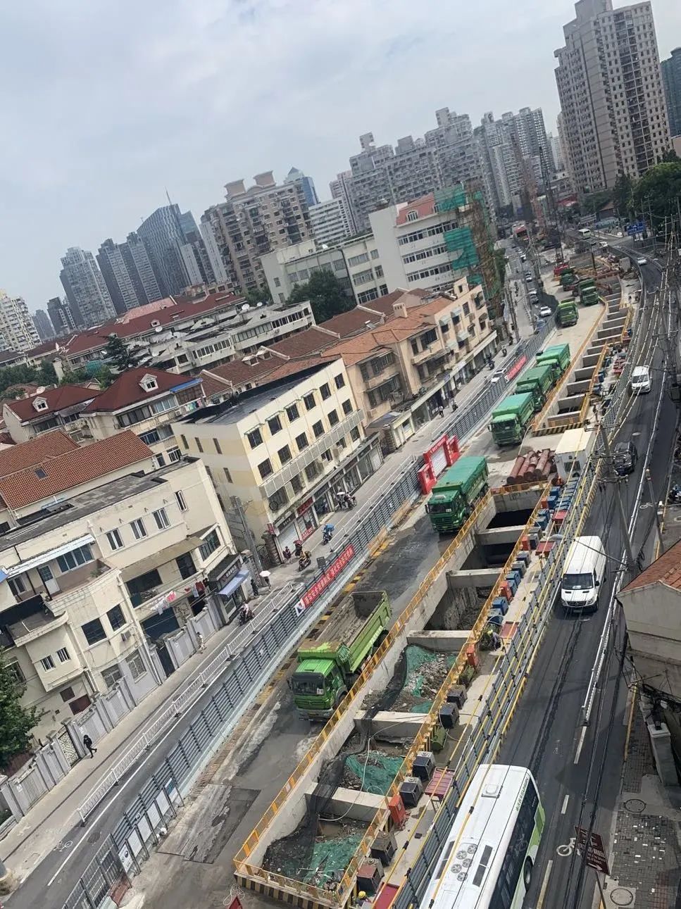 江苏路匝道自有序复工以来,项目部共计完成区域内4739根坑底加固施工,并且在与交通管理部门积极协商下,经过3次交通翻交,顺利完成了匝道C区基坑首道圈梁支撑及栈桥盖板,不仅解决了由于施工场地狭小,部分圈梁占据社会车道的问题,也为基坑开挖施工得以顺利进行奠定了基础。