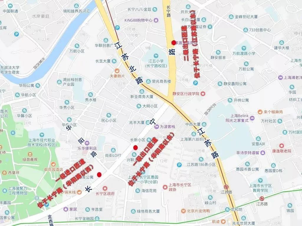 其进出口设置1进2出,进口位于华阳路西侧,一级出口位于华阳路东侧,二级出口位于江苏路东侧。