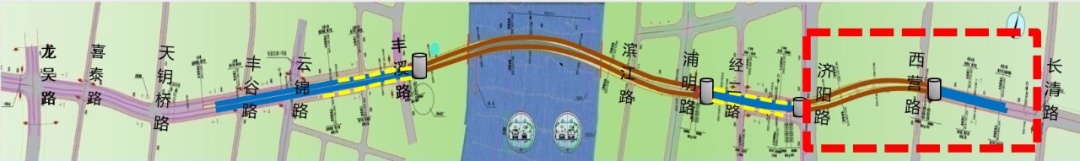 龙耀路越江隧道新建工程西起龙耀路龙吴路交叉口,沿规划龙耀路向东在上海水泥厂北侧过江,隧道下穿耀华玻璃厂码头在浦东登陆,至成山路长清路止,全长约4公里,分别在浦西云锦路东、浦东济阳路西各设一对出入口匝道。