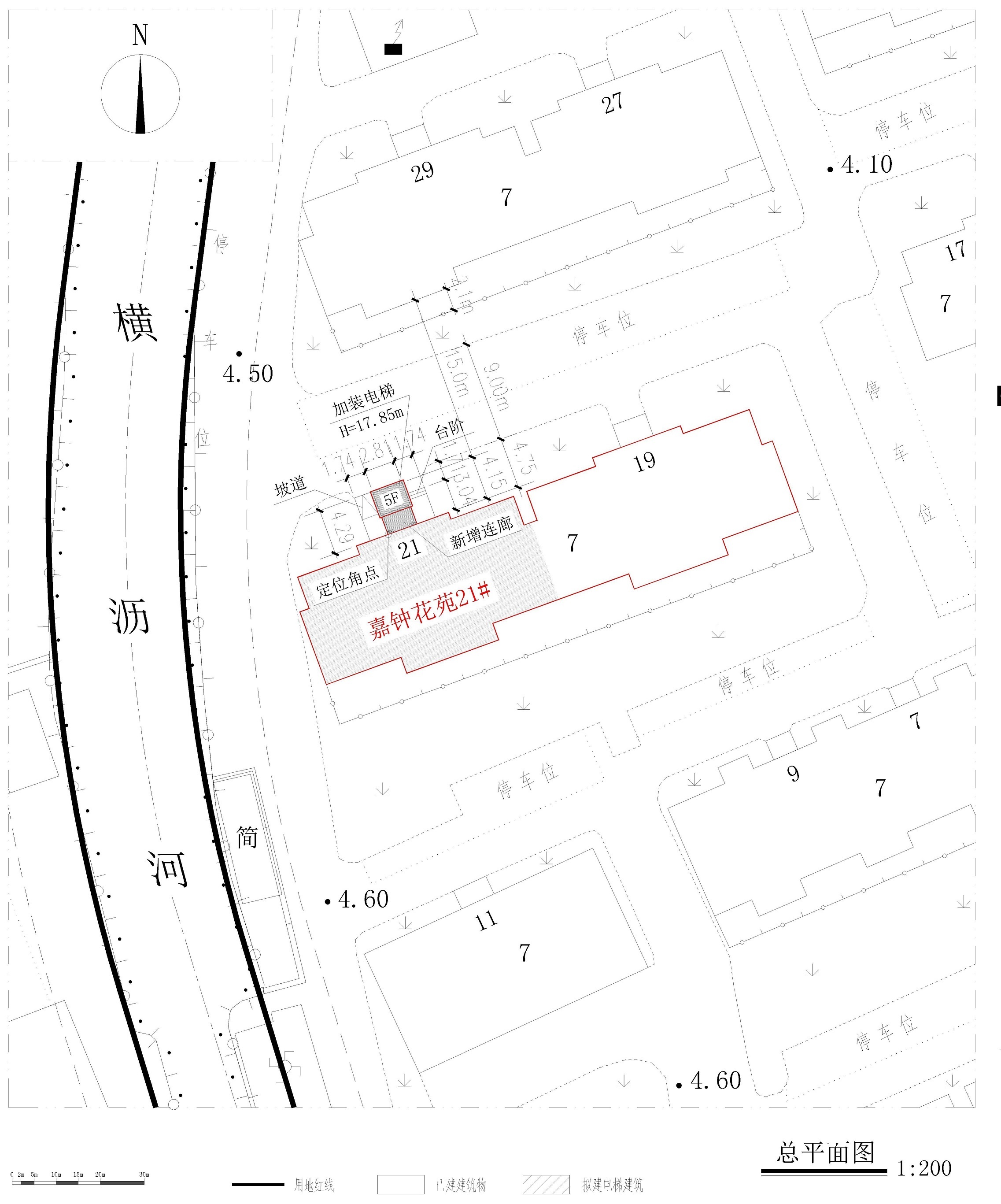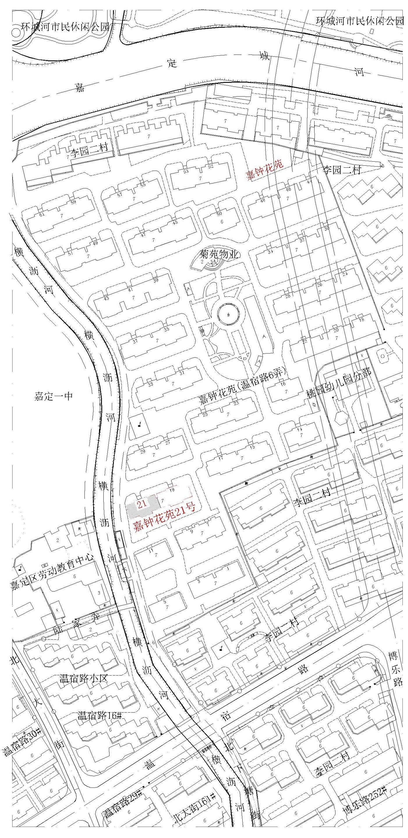 建设用地范围:嘉钟花苑21号楼北门口