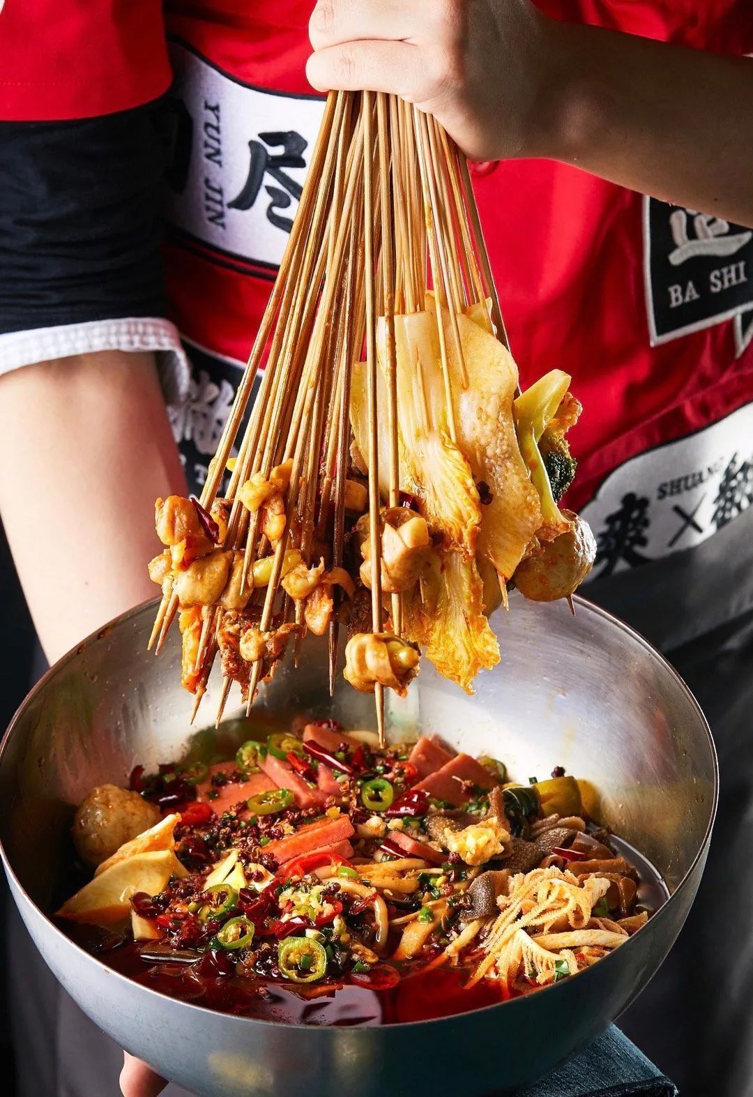 这是一家“明星餐厅”,韩国丈夫李承铉为了能让爱撸串的成都太太戚薇吃到地道的成都串串,于是在上海开了三家“奎星楼”。数十种当地空运而来的香辛料,配以筒骨高汤,经过4个多小时熬煮,才成就地道的纯牛油锅底。串串吸收汤底精华,香气四溢,让人垂涎。